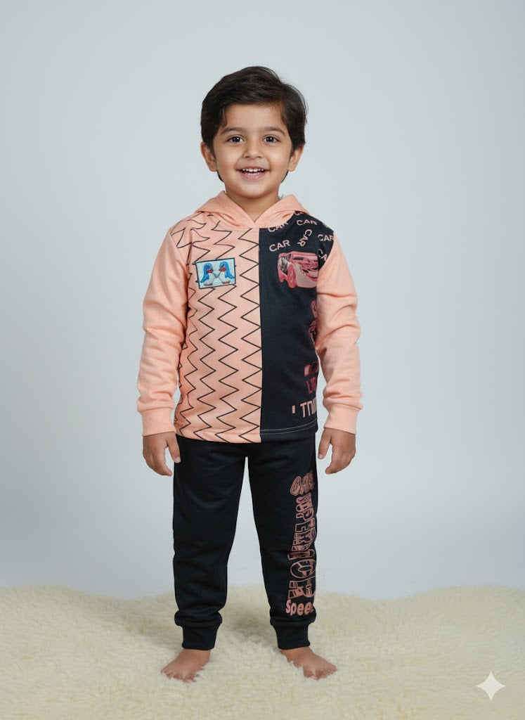 Get ready to zoom with this energetic Speed Racer Hoodie Set! This playful two-piece track suit is designed for comfort and high-octane fun, perfect for your little speedster.