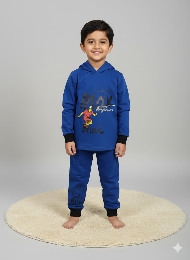 The coordinating trousers are designed for a relaxed fit and feature an elasticated waist for easy dressing and all-day comfort. Made from a soft, warm fabric blend, this set is ideal for active play during cooler seasons.